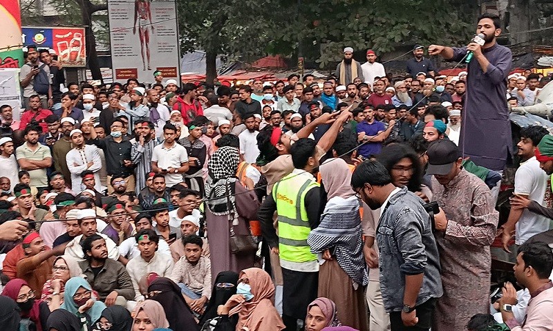 এর আগে শহীদ শরিফ ওসমান হাদির জানাজা শেষ করে মিছিল নিয়ে ছাত্র-জনতা শাহবাগে আসতে শুরু করে।এ সময় তাদের নানা ধরনের স্লোগান দিতে দেখা যায়।