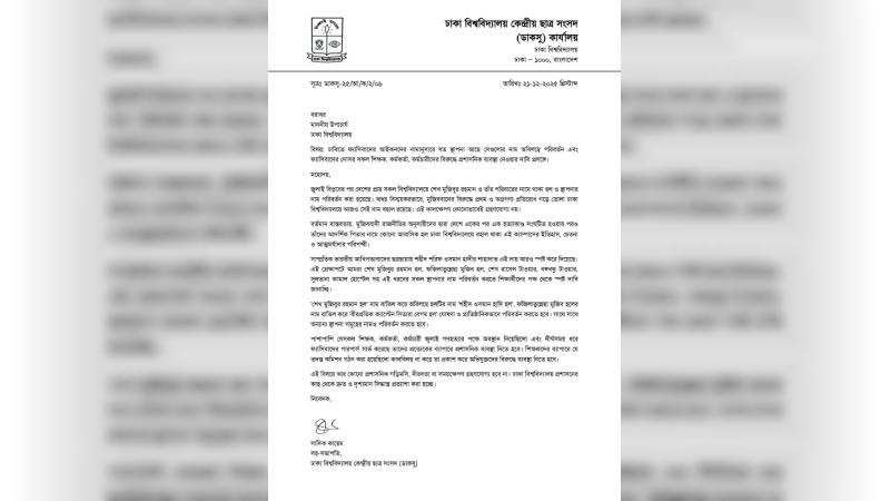 ঢাকা বিশ্ববিদ্যালয়ের (ঢাবি) শিক্ষার্থীরা উপাচার্যের কার্যালয় ঘেরাও করেছেন, দাবি জানিয়ে যে বিশ্ববিদ্যালয়ের দুটি আবাসিক হলের নাম পরিবর্তন করা হোক। কেন্দ্রীয় ছাত্র সংসদ (ডাকসু)-এর নেতাসহ সাধারণ শিক্ষার্থীরা বলছেন, শেখ মুজিবুর রহমান হলের নাম ‘শহীদ ওসমান হাদি হল’ এবং বঙ্গমাতা শেখ ফজিলাতুন্নেছা মুজিব হলের নাম ‘বীর প্রতীক সেতারা বেগম’ রাখা হোক। একই সঙ্গে, জুলাই গণহত্যায় সমর্থন দেওয়ার কারণে ঢাবির কিছু শিক্ষক, কর্মকর্তা ও কর্মচারীর বিষয়ে প্রশাসনিক ব্যবস্থা নেওয়ার দাবি জানিয়েছেন তারা।