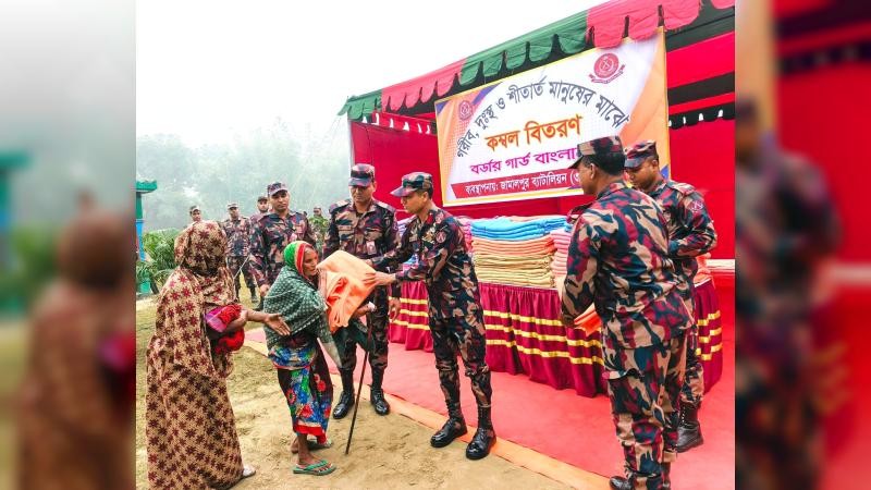 বর্ডার গার্ড বাংলাদেশ (বিজিবি) দুস্থদের মধ্যে কম্বল বিতরণ করেন। (২৫ ডিসেম্বর ) বৃহঃপতিবার সকালে দাঁতভাঙ্গা বিজিবি ক্যাম্প সংলগ্ন ঈদগাহ মাঠে দুইশত শীতার্ত মানুষের মধ্যে এই কম্বল বিতরণ করা হয়।