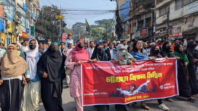 ইনকিলাব মঞ্চের মুখপাত্র শরীফ ওসমান হাদি হত্যার দ্রুত বিচার ও খুনিদের গ্রেপ্তারের দাবিতে চট্টগ্রামে বিক্ষোভ মিছিল ও সমাবেশ করেছে ইনকিলাব মঞ্চ। শুক্রবার (২৬ ডিসেম্বর) জুমার নামাজের পর নগরের আন্দরকিল্লা শাহী জামে মসজিদ প্রাঙ্গণ থেকে বিক্ষোভ মিছিলটি বের করা হয়।