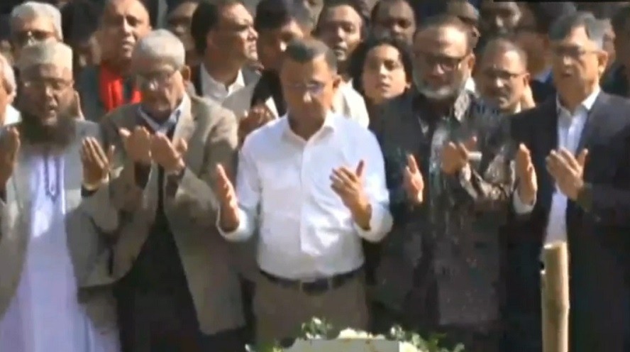 ইনকিলাব মঞ্চের মুখপাত্র ও জুলাই যোদ্ধার অগ্রনায়ক শহীদ শরিফ ওসমান বিন হাদির কবর জিয়ারত করেছেন বিএনপির ভারপ্রাপ্ত চেয়ারম্যান তারেক রহমান। শনিবার (২৭ ডিসেম্বর) বেলা সাড়ে ১১টায় তিনি ঢাকা বিশ্ববিদ্যালয়ের কেন্দ্রীয় মসজিদ সংলগ্ন হাদির কবরে পৌঁছে ফুল দিয়ে শ্রদ্ধা জানান এবং মরহুমের আত্মার মাগফিরাত কামনায় দোয়া ও মোনাজাত করেন।