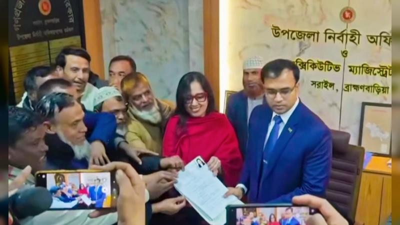 ব্রাহ্মণবাড়িয়া-২ সংসদীয় আসনে স্বতন্ত্র প্রার্থী হিসেবে মনোনয়ন দাখিল করেছেন বিএনপির কেন্দ্রীয় কমিটির সহ-আন্তর্জাতিক বিষয়ক সম্পাদক ব্যারিস্টার রুমিন ফারহানা। সোমবার (২৯ ডিসেম্বর) দুপুরে সরাইল উপজেলার সহকারী রিটার্নিং কর্মকর্তার কার্যালয়ে উপস্থিত হয়ে তিনি মনোনয়নপত্র দাখিল করেছেন।