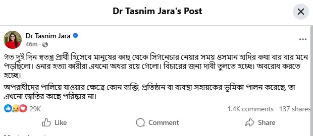 বিডি২৪লাইভের পাঠকদের জন্য তার পোস্টটি হুবহু তুলে ধরা হলো-