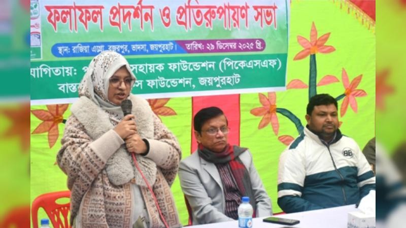 অনুষ্ঠানে কৃষকদের মাঝে জৈব সারের ব্যবহার ও উপকারিতা নিয়ে মূল্যবান বক্তব্য রাখেন জয়পুরহাট সদর উপজেলার কৃষি অফিসার রাফসিয়া জাহান।