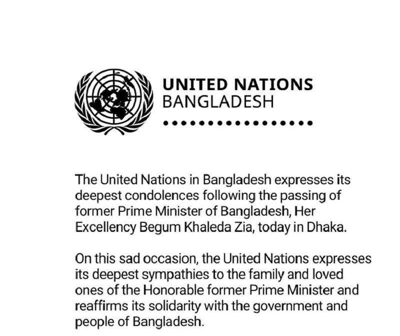 বাংলাদেশের প্রথম নারী প্রধানমন্ত্রী ও বিএনপি চেয়ারপারসন খালেদা জিয়ার মৃত্যুতে গভীর শোক প্রকাশ করেছে জাতিসংঘ।