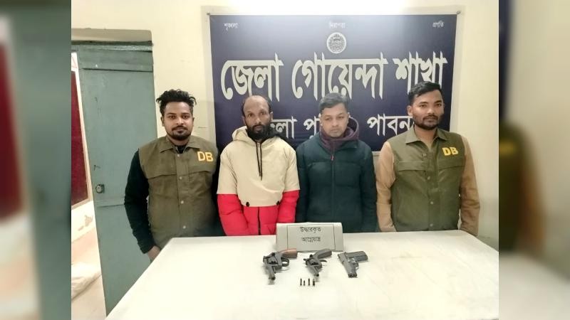 পাবনা শহরে গোয়েন্দা পুলিশের (ডিবি) বিশেষ অভিযানে তিনটি অস্ত্র ও বিপুল পরিমাণ গুলিসহ চারজনকে আটক করা হয়েছে।