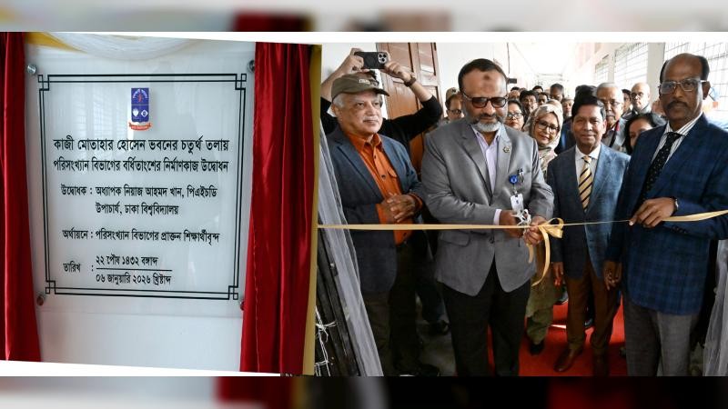 ঢাকা বিশ্ববিদ্যালয়ের (ঢাবি) পরিসংখ্যান বিভাগের প্রাক্তন শিক্ষার্থীদের অর্থায়নে বিশ্ববিদ্যালয়ের কাজী মোতাহার হোসেন ভবনের চতুর্থ তলায় পরিসংখ্যান বিভাগের নবনির্মিত বর্ধিতাংশ উদ্বোধন করা হয়েছে।