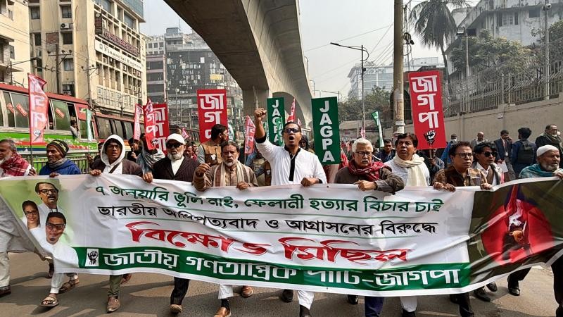 আজ ৭ জানুয়ারি বুধবার সকালে ফেলানী হত্যা দিবস উপলক্ষে রাজধানীর বিজয়নগর-পল্টন এলাকায় ভারতীয় আধিপত্যবাদ ও আগ্রাসন বিরোধী জাগপা আয়োজিত বিক্ষোভ মিছিল শেষে প্রেসক্লাবের সামনে সংক্ষিপ্ত সমাবেশে তিনি এসব কথা বলেন। এসময় আরও বক্তব্য রাখেন জাগপা সাধারণ সম্পাদক অধ্যাপক ইকবাল হোসেন, প্রেসিডিয়াম সদস্য আসাদুর রহমান খান, সৈয়দ শফিকুল ইসলাম, সাংঠনিক সম্পাদক মো: নাসির উদ্দিন, যুব জাগপা সভাপতি নজরুল ইসলাম বাবলু, সাংগঠনিক সম্পাদক ওলিউল আনোয়ার প্রমুখ।