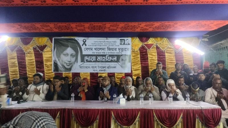 বেগম খালেদা জিয়ার আত্মার শান্তি ও মাগফেরাত কামনায় রাজবাড়ীর পাংশা উপজেলা শ্রমিকদলের উদ্দোগে দোয়া মাহফিল অনুষ্ঠিত হয়েছে।