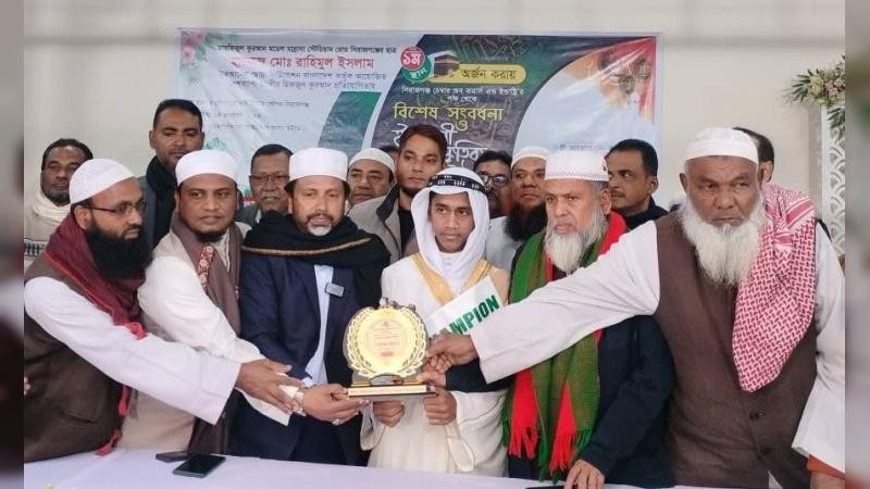 হাফেজ মো. রাহিমুল ইসলাম বলেন, ঢাকার শেগুন বাগিচায় আয়োজিত এই প্রতিযোগিতায় সাড়ে তিন হাজার প্রতিযোগী অংশ নিয়েছিল। সবার মধ্যে প্রথম হতে পেরেছি। এতো আমার আনন্দ ও গর্বের সীমা নেই। সে আল্লাহর প্রতি কৃতজ্ঞতা প্রকাশ করে এবং তার শিক্ষক ও অভিভাবকদের দোয়া কামনা করেন। বিশেষ সংবর্ধনা শেষে তিনি কোরআন তেলোয়াত করেছেন। অনুষ্ঠানে বিভিন্ন মাদ্রাসা ছাত্র ও কোরআনে হাফেজসহ বিভিন্ন শ্রেনীর মানুষ অংশগ্রহন করেন। অনুষ্ঠান শেষে সন্ধ্যার পর ইসলামী সাংস্কৃতিক অনুষ্ঠানে শিল্পীরা বিভিন্ন সঙ্গীত পরিবেশন করেন।