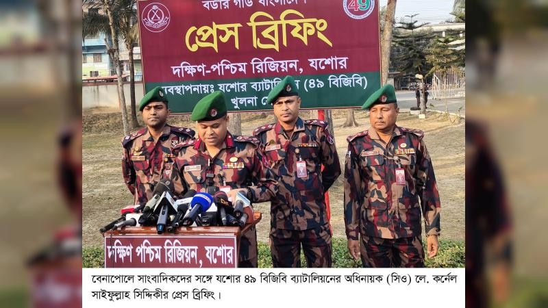 আসন্ন ত্রয়োদশ জাতীয় সংসদ নির্বাচনকে ঘিরে দুষ্কৃতিকারীরা যাতে দেশের শান্তিপূর্ণ পরিবেশকে অস্থিতিশীল করতে না পারে, সে লক্ষ্যে বর্ডার গার্ড বাংলাদেশ (বিজিবি) সর্বোচ্চ সতর্ক অবস্থানে রয়েছে। নির্বাচনী নিরাপত্তা, সীমান্ত সুরক্ষা ও আইন-শৃঙ্খলা পরিস্থিতি নিয়ন্ত্রণে বিজিবি নিরলসভাবে কাজ করছে বলে জানিয়েছেন যশোর ৪৯ বিজিবি ব্যাটালিয়নের অধিনায়ক (সিও) লেফটেন্যান্ট কর্নেল সাইফুল্লাহ সিদ্দিকী।