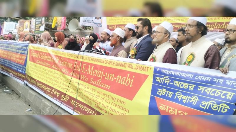 সত্য ও জীবনের উপলব্ধির জন্য অতি অপরিহার্য মৌলিক ঈমানী বিষয় ঈদে মেরাজ শরীফের মহান তাৎপর্য্য তুলে ধরার লক্ষ্যে বিশ্ব সুন্নী আন্দোলনের উদ্যোগে গতকাল ঢাকা প্রেসক্লাব সম্মুখে সমাবেশ ও সমাবেশ শেষে বর্ণাঢ্য শোভাযাত্রা অনুষ্ঠিত হয়।