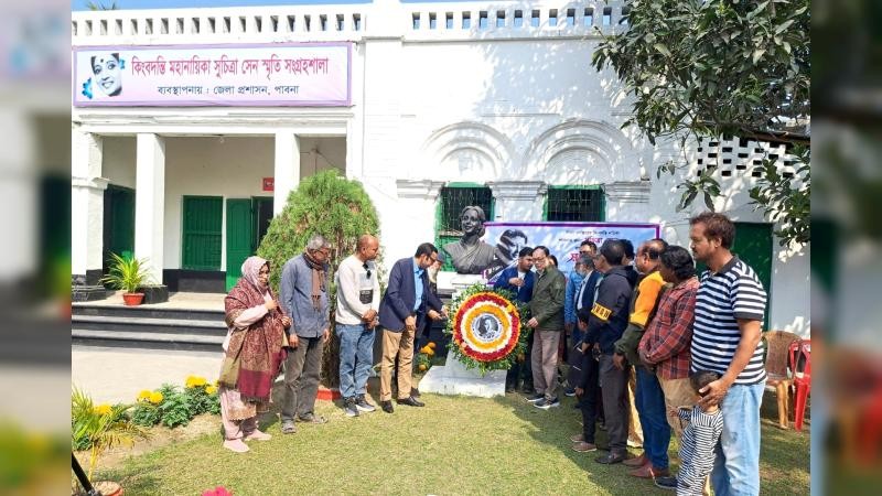 শনিবার (১৭ জানুয়ারি) বেলা ১১টায় মহানায়িকা সুচিত্রা সেনের পৈত্রিক বাড়ি শহরের হেমসাগর লেনে সুচিত্রা সেন স্মৃতি সংরক্ষণ পরিষদের উদ্যোগে সংগ্রহশালায় স্থাপিত ভাস্কর্যে পুষ্পস্তবক অর্পণ করা হয়।