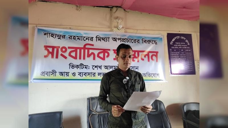 সামাজিক যোগাযোগ মাধ্যমে অপপ্রচার ও যুক্তরাষ্ট্রে কর্মরত অবস্থায় পাওনা টাকা আত্মসাৎ এবং পরিকল্পিত মিথ্যা মামলার শিকার হওয়ার অভিযোগ এনে প্রতিপক্ষ শাহনুরের বিরুদ্ধে সংবাদ সম্মেলন করেছেন প্রবাসী মোঃ শেখ আলমগীর হাসান।