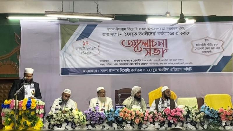 নোয়াখালীতে ইমান-ইসলাম বিরোধী সকল অপতৎপরতা বন্ধকরণ এবং ভ্রান্ত সংগঠন ‘হিযবুত তাওহীদের’ সকল কর্মকাণ্ড বন্ধের প্রতিবাদে আলোচনা সভা অনুষ্ঠিত হয়েছে।