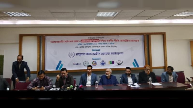 মানুষের জন্য আইনি সহায়তা (মাজ আসার উদ্যোগে "নির্বাচনকালীন সহিংসতা রোধে ও ভোটারদের নিরাপত্তা নিশ্চিতে করণীয় শীর্ষক গোলটেবিল আলোচনা সভা সংগঠনটির চেয়ারম্যান আব্দুল বাতেন রাফির সভাপতিত্বে অনুষ্ঠিত হয়। গতকাল ১৯ জানুয়ারি সোমবার সকাল ১০:০০ ঘটিকায় জাতীয় প্রেস ক্লাব এর তোফাজ্জল হোসেন মানিক মিয়া হলে মানুষের জন্য আইনি সহায়তা ফাউন্ডেশন (মাজশাল) এর উদ্যোগে অনুষ্ঠিত এই সংগঠনটিতে প্রধান অতিথি হিসেবে উপস্থিত ছিলেন সংবিধান ও রাজনৈতিক বিশ্লেষক সাবেক জেলা ও দায়রা জাজ ইকতেদার আহমেদ।