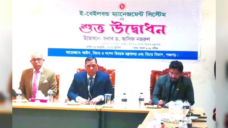 পঞ্চগড়সহ আট জেলায় ই-বেইলবন্ড ম্যানেজমেন্ট সিস্টেম এর উদ্বোধন করা হয়েছে। সচিবালয় প্রান্তে প্রধান অতিথি হিসেবে উপস্থিত থেকে ভার্চুযালি যুক্ত হয়ে আইন, বিচার ও সংসদ বিষয়ক মন্ত্রণালয়ের উপদেষ্টা ড. আসিফ নজরুল এ কার্যক্রমের উদ্বোধন করেন।