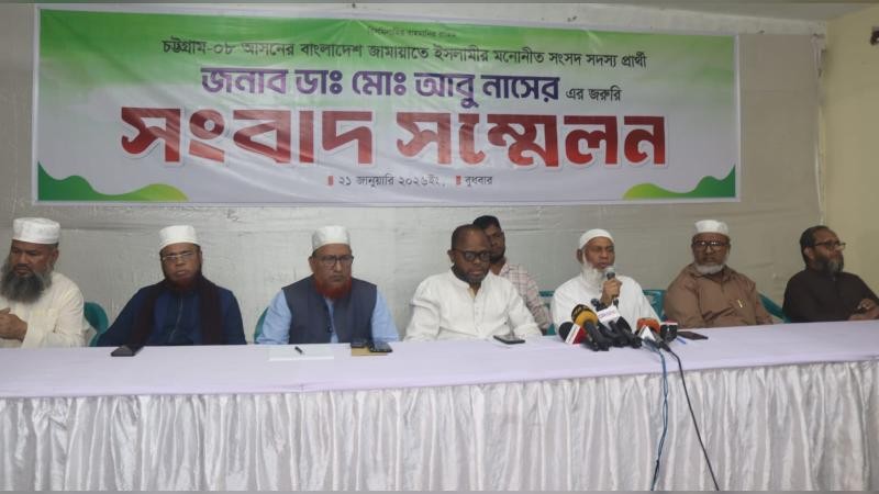 বুধবার (২১ জানুয়ারি) নগরের জামায়াত কার্যালয়ে আয়োজিত এক সংবাদ সম্মেলনে এ ঘোষণা দেওয়া হয়। জামায়াতের মনোনীত প্রার্থী ডা. আবু নাসেরের পক্ষে নগর জামায়াতের সহকারী সেক্রেটারি মোরশেদুল ইসলাম চৌধুরী এ ঘোষণা দেন। অসুস্থতার কারণে সংবাদ সম্মেলনে ডা. আবু নাসের উপস্থিত ছিলেন না বলে সংবাদ সম্মেলনে জানানো হয়।