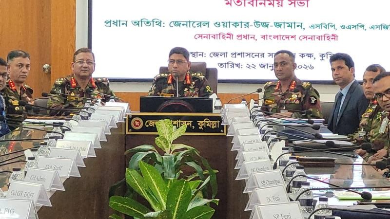 তিনি বর্তমান নিরাপত্তা পরিস্থিতিতে সর্বোচ্চ পেশাদারিত্ব বজায় রেখে দায়িত্ব পালনের ওপর গুরুত্বারোপ করেন। এ সময় তিনি কর্তব্যরত সৈনিকদের সঙ্গে মতবিনিময় করেন। যেকোনো পরিস্থিতি মোকাবিলায় ধৈর্য ও শৃঙ্খলার সঙ্গে কাজ করতে উদ্বুদ্ধ করেন। সফরের অন্যতম প্রধান অংশ হিসেবে সেনাবাহিনী প্রধান কুমিল্লা জেলা প্রশাসনের সম্মেলন কক্ষে একটি গুরুত্বপূর্ণ মতবিনিময় সভায় অংশ নেন।