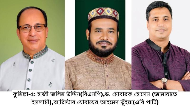 নির্বাচন কমিশন সূত্রে জানা গেছে, কুমিল্লা-৫ আসনে বিভিন্ন রাজনৈতিক দল থেকে মোট ১০ জন প্রার্থী প্রতিদ্বন্দ্বিতা করছেন।এই আসনে ইউনিয়ন ১৭টি,ভোটকেন্দ্রের সংখ্যা স্থায়ী ১৮২,ভোটকক্ষের সংখ্যা স্থায়ী ৯০২,অস্থায়ী ৩৮,ভোটারের সংখ্যা পুরুষ ২৩৫৮৫৫,মহিলা ২২৭৯৮৭,পোস্টাল ভোটার সংখ্যা পুরুষ ১১৩০০,মহিলা ১০৩০ জন।প্রার্থীদের মধ্যে বাংলাদেশ জাতীয়তাবাদী দল বিএনপি’র হাজী জসিম উদ্দিন (ধানের শীষ),বাংলাদেশ জামায়াতে ইসলামীর এড.ড. মোবারক হোসেন, আমার বাংলাদেশ পার্টি (এবি পার্টি)’র ব্যারিস্টার যোবায়ের আহমেদ ভূঁইয়াকে মাঠে সক্রিয়ভাবে প্রচারণা চালাতে দেখা যাচ্ছে।অপরদিকে বাকি ৭ জন প্রার্থী বাংলাদেশ কমিউনিস্ট পার্টির আব্দুল্লাহ আল ক্বাফী( কাস্তে প্রতীক) বাংলাদেশ মুসলিমলীগ পার্টির আবুল কালাম ইদ্রিস( হারিকেন প্রতীক), ইনসানিয়াত বিপ্লব বাংলাদেশ পার্টির তানজিল আহমেদ( আপেল প্রতীক), ন্যাশনাল পিপলস্ পার্টি (এনপিপি) মোঃ আবুল বাসার( আম প্রতীক),জাতীয় পার্টির মনোনীত প্রার্থী মোঃ এমরানুল হক( লাঙ্গল প্রতীক),ইসলামী আন্দোলন বাংলাদেশ এর মনোনীত এমপি প্রার্থী মোঃ রাশেদুল ইসলাম( হাতপাখা প্রতীক),জাতীয় সমাজতান্ত্রিক দল- জেএসডি এর মনোনীত এমপি প্রার্থী শিরিন আক্তার (তারা প্রতীক)সহ তাদের নেতাকর্মীদের ভোটের মাঠে তেমন উপস্থিতি লক্ষ্য করা যাচ্ছে না।