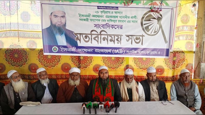 ২৮ কুড়িগ্রাম-৪ আসনের ইসলামী আন্দোলন বাংলাদেশ মনোনীত প্রার্থী সহকারী অধ্যাপক হাফিজুর রহমান রৌমারী ও রাজিবপুর উপজেলার সাংবাদিকদের সঙ্গে মতবিনিময় সভা করেছেন।