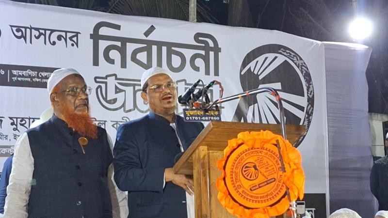 তিনি বলেন, বাংলাদেশের এই মুহূর্তে যারা নির্বাচনে প্রতিদ্বন্দিতা করছেন বিএনপি জোট বলেন অথবা জামায়াত জোট বলেন তারা কেউ ইসলামকে ক্ষমতায় নিতে চায় না। একমাত্র ইসলামী আন্দোলন বাংলাদেশ চায় ইসলামকে ক্ষমতায় নেয়ার জন্য। সেদিক থেকেই বলছি ইসলামী আন্দোলনের হাত পাখায় ভোট দিলে দুনিয়াতে শান্তি পাবেন এবং আখেরাতে মুক্তি পাবেন।