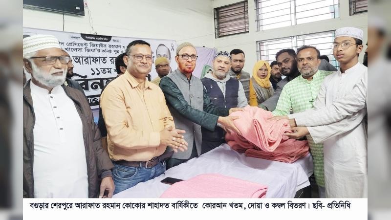 অনুষ্ঠানে আরও উপস্থিত ছিলেন শেরপুর উপজেলা আরাফাত রহমান কোকো স্মৃতি সংসদের সিনিয়র সহ-সভাপতি আব্দুল্লাহ আল কাফি। উপজেলা শাখার সাধারণ সম্পাদক পলাশের সঞ্চালনায় অনুষ্ঠানে বিভিন্ন পর্যায়ের নেতাকর্মী ও স্থানীয় মুসল্লিরা অংশ নেন। দোয়া মাহফিল পরিচালনা করেন শেরপুর শহীদীয়া আলিয়া কামিল মাদ্রাসার শিক্ষক মাওলানা সোহেল রানা। দোয়ায় আরাফাত রহমান কোকোর রুহের মাগফিরাত কামনার পাশাপাশি দেশ ও জাতির কল্যাণ কামনা করা হয়। অনুষ্ঠান শেষে শীতার্ত ও দুস্থ মানুষের মাঝে কম্বল বিতরণ করা হয়।
