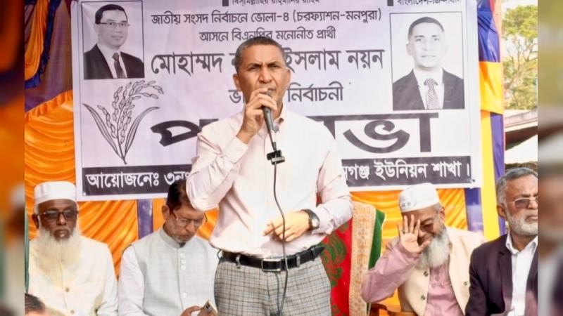 ভোলা-৪ (চরফ্যাশন ও মনপুরা) আসনের বিএনপি দলীয় সংসদ সদস্য প্রার্থী ও কেন্দ্রীয় যুবদলের সাধারণ সম্পাদক নুরুল ইসলাম নয়ন বলেছেন, একটি দল বাড়ি বাড়ি গিয়ে নারী ভোটারদের বিভ্রান্ত করছে। বিভ্রান্ত করে নারী ভোটারদের সমর্থন আদায় করা যায়না।