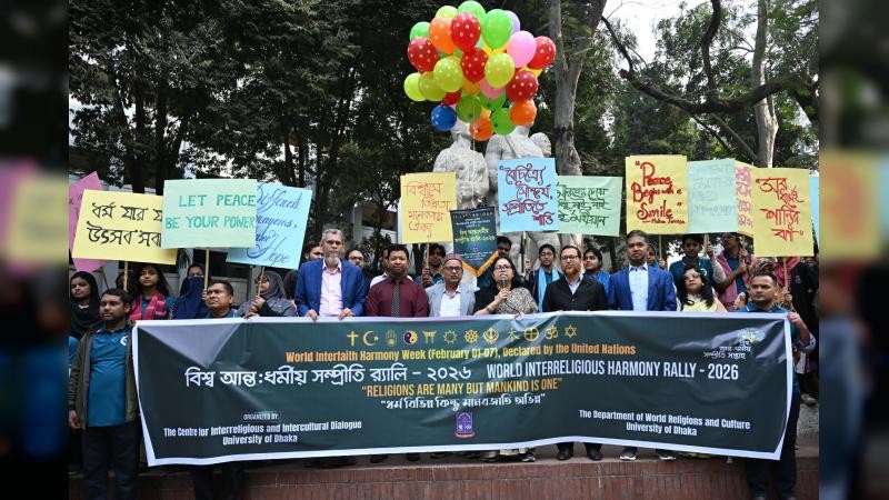 বিশ্ব আন্তঃধর্মীয় সম্প্রীতি সপ্তাহ উপলক্ষ্যে ঢাকা বিশ্ববিদ্যালয়ে (ঢাবি) সম্প্রীতি র্যালির অনুষ্ঠিত হয়েছে। রোববার (১ ফেব্রুয়ারি) বিশ্ববিদ্যালয়ের আন্তঃধর্মীয় ও আন্তঃসাংস্কৃতিক সংলাপ কেন্দ্র এবং বিশ্বধর্ম ও সংস্কৃতি বিভাগের যৌথ উদ্যোগে অপরাজেয় বাংলার পাদদেশ থেকে এক আন্তঃধর্মীয় সম্প্রীতি র্যালি বের করা হয়।