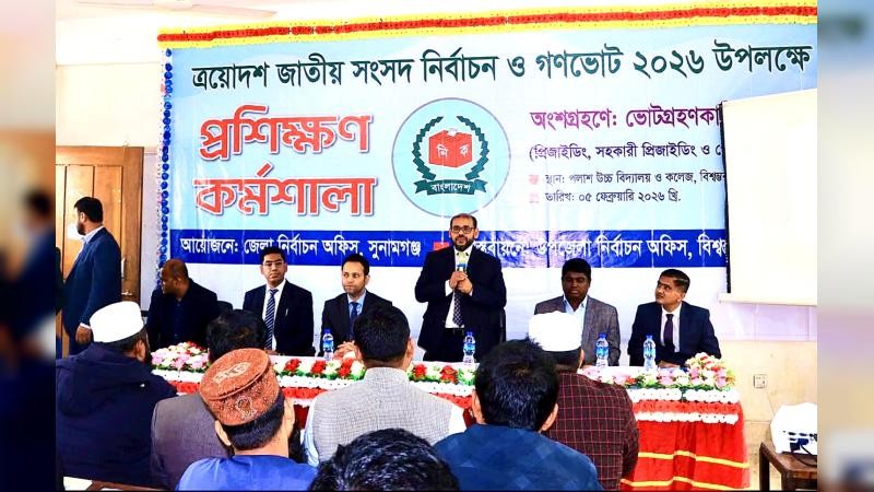 সুনামগঞ্জের বিশ্বম্ভরপুর উপজেলায় ভোটগ্রহণকারী কর্মকর্তাদের বিশেষ প্রশিক্ষণ কর্মশালা অনুষ্ঠিত হয়েছে। ত্রয়োদশ জাতীয় সংসদ নির্বাচন ও গণভোট ২০২৬ অবাধ, সুষ্ঠু ও নিরপেক্ষভাবে সম্পন্ন করার লক্ষ্যে এই অনুষ্ঠিত হয়।