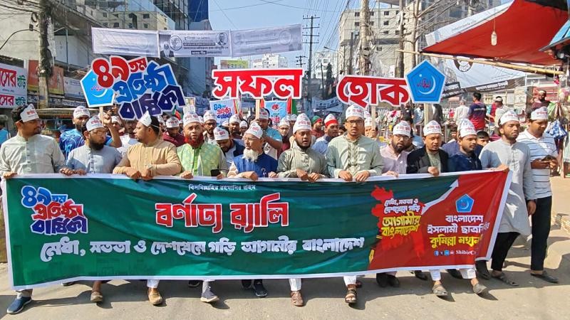 বাংলাদেশ ইসলামী ছাত্র শিবিরের ৪৯তম প্রতিষ্ঠাবার্ষিকী উপলক্ষে কুমিল্লা মহানগর ইসলামী ছাত্র শিবিরের উদ্যেগে বর্ণাঢ্য র্যালি অনুষ্ঠিত হয়েছে। শুক্রবার (৬ ফেব্রুয়ারি) সকাল ১০টায় র্যালিটি কুমিল্লা টাউন হল মাঠ থেকে শুরু হয়ে কুমিল্লা প্রেসক্লাবসহ নগরীর বিভিন্ন স্থান প্রদক্ষিন করে।