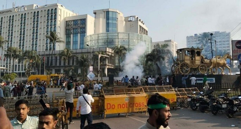 প্রত্যক্ষদর্শীদের মতে, পরিস্থিতি নিয়ন্ত্রণে পুলিশ লাঠিচার্জের পাশাপাশি সাউন্ড গ্রেনেড ও কাঁদুনে গ্যাস নিক্ষেপ করে। এ সময় আন্দোলনকারীদের একাংশ পুলিশকে লক্ষ্য করে ইট-পাটকেল ছোড়ে।