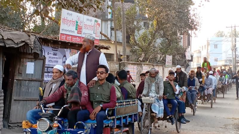 নাটোরের গুরুদাসপুর পৌরসভার নয়টি ওয়ার্ডে ভ্যানযোগে ঘুরে ঘুরে ভোট চাইলেন জামায়াত ইসলাম মনোনিত দাঁড়িপাল্লা প্রতীকের প্রার্থী অধ্যাপক মাওলানা আব্দুল হাকিম।