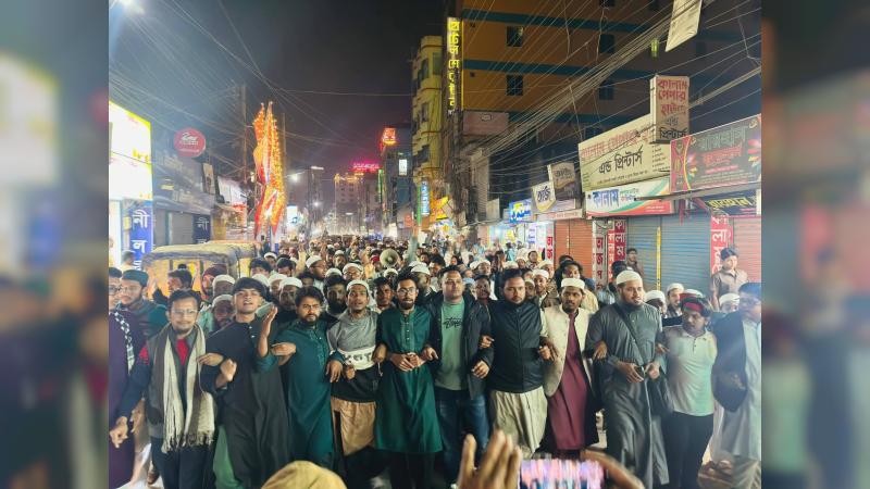 শুক্রবার (৬ ফেব্রুয়ারি) রাত সাড়ে ৮টার দিকে জেলা শহরের ঐতিহাসিক শহীদী মসজিদের সামনে থেকে বিক্ষোভ মিছিল শুরু হয়। মিছিলটি জেলা শহরের বিভিন্ন সড়ক প্রদক্ষিণ করে আখড়া বাজার চত্বরে গিয়ে শেষ হয়।