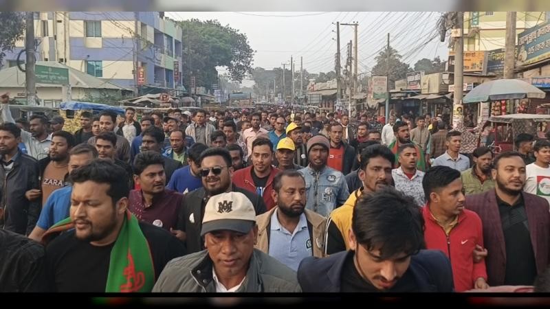 মিছিলে জেলা বিএনপি, মহিলা দল, যুবদল, স্বেচ্ছাসেবক দল, ছাত্রদল ও তাঁতী দলের কয়েক হাজার নেতাকর্মী অংশ নেন। দলীয় পতাকা, ব্যানার ও ফেস্টুন হাতে নেতাকর্মীদের স্লোগানে মুখর হয়ে ওঠে শহরের প্রধান সড়কগুলো। মিছিলকে ঘিরে উৎসবমুখর পরিবেশ দেখা যায়। মিছিলের শুরুতে শুভেচ্ছা বক্তব্য দেন বিএনপির প্রার্থী ব্যারিস্টার নওশাদ জমির। মিছিলটির নেতৃত্ব দেন তাঁর ছোট ভাই, নির্বাচনী এজেন্ট, বিশিষ্ট লেখক ও মিডিয়া ব্যক্তিত্ব ব্যারিস্টার নওফল জমির। এ সময় নেতাকর্মীরা ১২ তারিখ শুভ দিন, ধানের শীষে ভোট দিন, তারেক রহমানের সালাম নিন, ধানের শীষে ভোট দিন, পঞ্চগড়ের মার্কা ধানের শীষ মার্কা ও গণতন্ত্রের মার্কা ধানের শীষ মার্কা’সহ বিভিন্ন স্লোগান দেন।