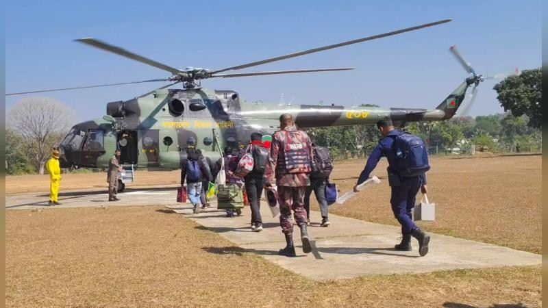 খাগড়াছড়ির প্রত্যন্ত ও দুর্গম ৩ পাহাড়ি ভোটকেন্দ্রে হেলিকপ্টারযোগে নির্বাচনি সরঞ্জাম পৌঁছে দিচ্ছে নির্বাচন কমিশন।