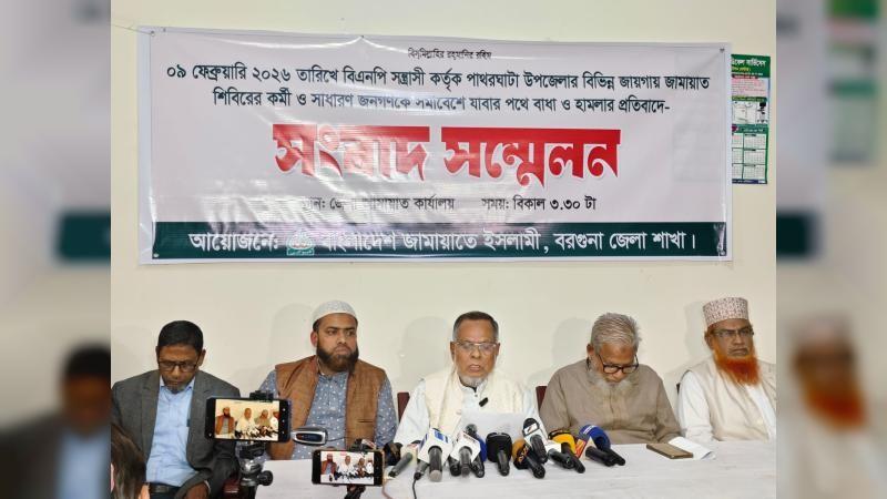 বরগুনায় জামায়াত শিবিরের নেতাকর্মী ও সমর্থকদের সমাবেশে যাওয়ার পথে বাধা ও হামলার প্রতিবাদে সংবাদ সম্মেলন করেছে জেলা জামায়াত। এসময় সাবেক সংসদ সদস্য গোলাম সরোয়ার হিরুর ওপর সন্ত্রাসী হামলার প্রতিবাদ জানানো হয়।