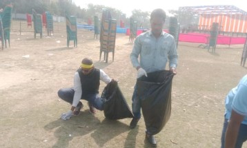 মোংলা হ্যালিপেড ও ঈদগাহ সংলগ্ন মাঠে অনুষ্ঠিত দুইটি বড় নির্বাচনী জনসভার পর মাঠে পড়ে থাকা ময়লা-আবর্জনা পরিষ্কার করেছেন বিএনপির সহযোগী সংগঠন স্বেচ্ছাসেবক দলের নেতা-কর্মীরা।