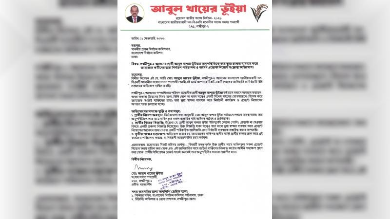 লক্ষ্মীপুর-২ আসনে জামায়াত কর্মীদের বিরুদ্ধে এক প্রার্থীর ভুয়া স্বাক্ষর ব্যবহার করে পোলিং এজেন্ট নিয়োগের অভিযোগ উঠেছে। এ বিষয়ে প্রধান নির্বাচন কমিশনার (সিইসি) এ এম এম নাসির উদ্দিনের কাছে লিখিত অভিযোগ দিয়েছেন বিএনপি মনোনীত সংসদ সদস্য প্রার্থী মো. আবুল খায়ের ভূঁইয়া।
