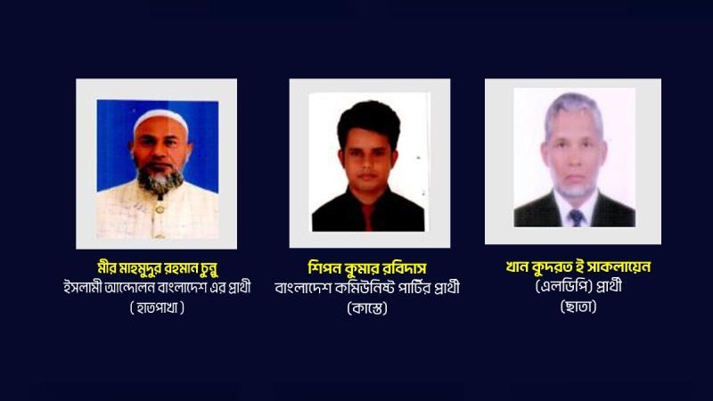 তাঁরা হলেন ইসলামী আন্দোলন বাংলাদেশের প্রার্থী মীর মাহমুদুর রহমান চুন্নু, বাংলাদেশ কমিউনিস্ট পার্টির প্রার্থী শিপন কুমার রবিদাস ও লিবারেল ডেমোক্রেটিক পার্টির (এলডিপি) প্রার্থী খান কুদরত ই সাকলায়েন। এই তিন প্রার্থী শেষ পর্যন্ত প্রত্যাশিত ফল করতে পারেননি।