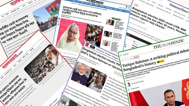 হিন্দুস্তান টাইমস বাংলার প্রধান প্রতিবেদনের শিরোনামে বলা হয়, ‘দিল্লিতে বসে ভোট প্রত্যাখ্যান হাসিনার, বাংলাদেশের ভোটে জয় নিয়ে তারেক রহমানকে কী বার্তা মোদির?’
