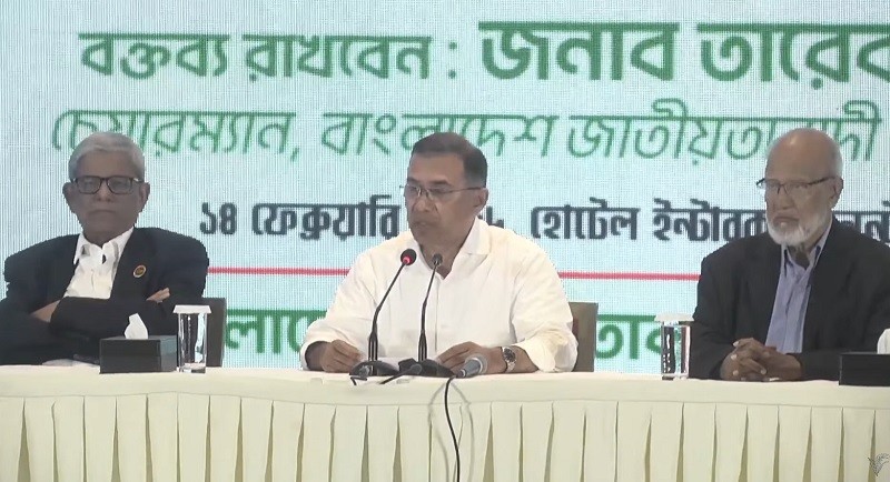 ত্রয়োদশ সংসদ নির্বাচনে বিএনপির নিরঙ্কুশ জয়ের পর প্রথমবারের মতো সংবাদ সম্মেলন করছেন দলটির চেয়ারম্যান তারেক রহমান।