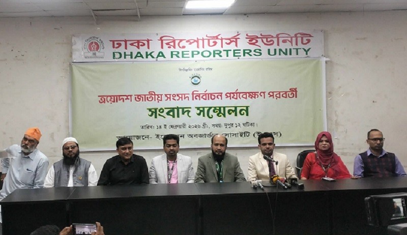 ইলেকশন অবজারভার সোসাইটি (ইওএস) ত্রয়োদশ জাতীয় সংসদ নির্বাচন পর্যবেক্ষণ সংক্রান্ত তাৎক্ষণিক তথ্য ও সংক্ষিপ্ত বিশ্লেষণ তুলে ধরেছে। রাজধানীর রিপোর্টার্স ইউনিটিতে আয়োজিত সংবাদ সম্মেলনে সংস্থাটি জানায়, দেশব্যাপী সম্পূর্ণ স্বেচ্ছাশ্রমের ভিত্তিতে, কোনো ধরনের অর্থায়ন ছাড়াই ইওএস ২৯৯টি সংসদীয় আসনে পর্যবেক্ষক মোতায়েন করে সদ্য সমাপ্ত নির্বাচনের সার্বিক পরিস্থিতি পর্যবেক্ষণ ও তথ্য সংগ্রহ করেছে।