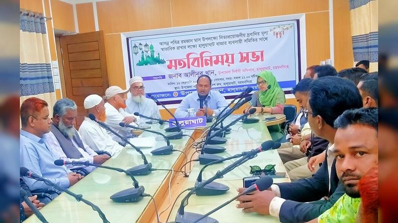 আসন্ন পবিত্র রমজান মাস উপলক্ষে নিত্যপ্রয়োজনীয় দ্রব্যের মূল্য স্বাভাবিক ও সহনীয় পর্যায়ে রাখার লক্ষ্যে হালুয়াঘাট বাজার ব্যবসায়ীদের সাথে মতবিনিময় সভা অনুষ্ঠিত হয়েছে।