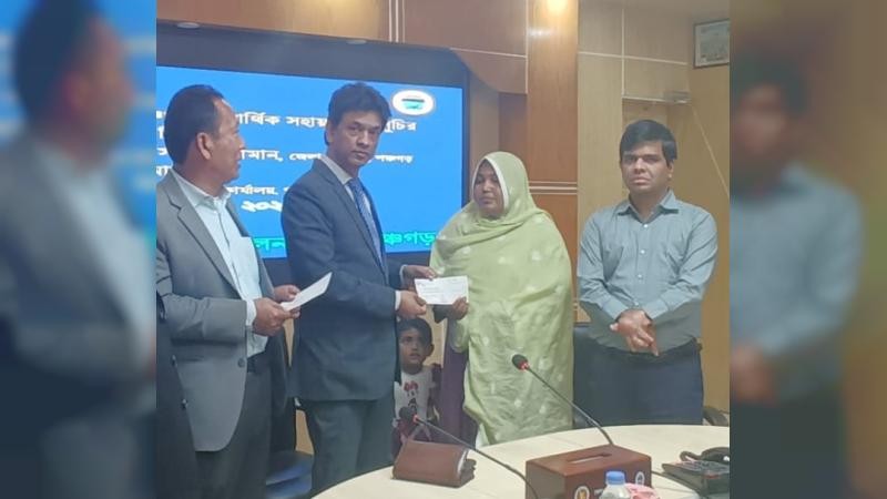 এ সময় অতিরিক্ত জেলা প্রশাসক সুমন চন্দ্র দাস, পঞ্চগড় সমাজসেবা অধিদপ্তরের উপ-পরিচালক অনিরূদ্ধ কুমার রায় সহ সংশ্লিস্টরা উপস্থিত ছিল। সমাজ সেবা অধিদপ্তর সুত্রে জানা যায় গত তিন চার মাস পূর্বে জেলার বেশ কিছু অসহায় দুস্থ গরিব অর্থিক সাহায্যের জন্য আবেদন করেন। পরে আবেদনকারীদের মধ্যে ৩৬জন কে তালিকাভূক্ত করা হয়। আজ ৩৬ জনকে ৩ লাখ ৫৭ হাজার টাকার চেক বিতরন করা হয়।