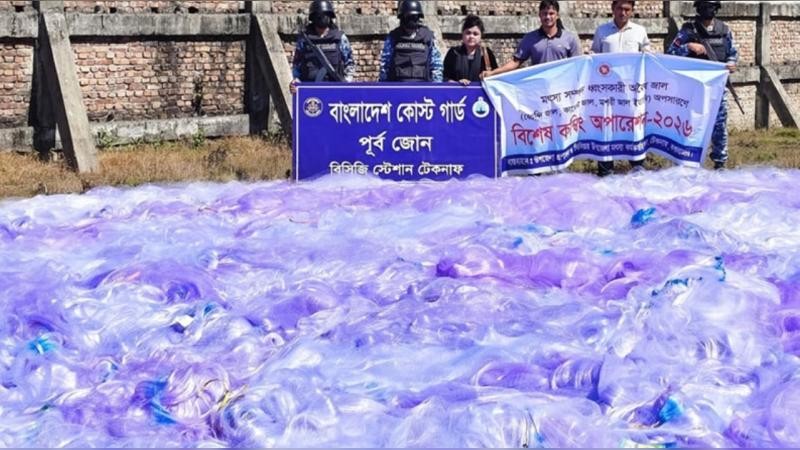কক্সবাজারের টেকনাফে বিপুল পরিমাণ অবৈধ কারেন্ট জাল জব্দ করেছে বাংলাদেশ কোস্ট গার্ড ও মৎস্য অধিদপ্তর। জব্দ করা জালের আনুমানিক বাজারমূল্য প্রায় ৬৩ কোটি টাকা বলে জানিয়েছে সংশ্লিষ্ট কর্তৃপক্ষ।