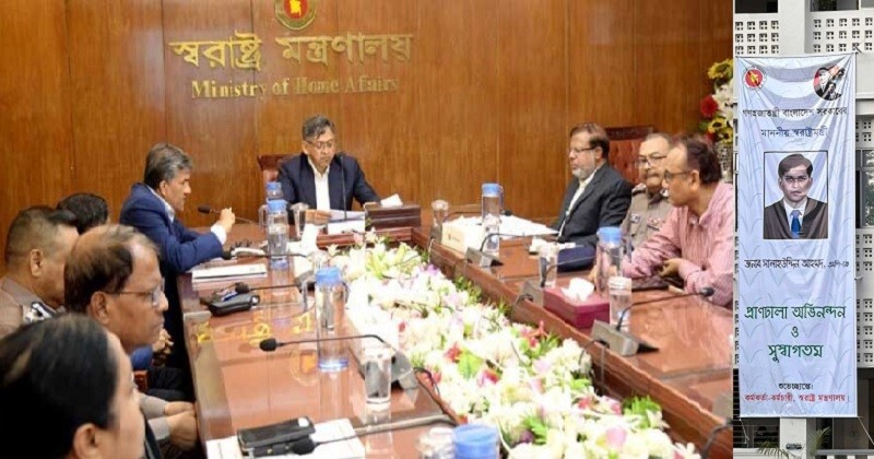 সচিবালয়ে স্বরাষ্ট্র মন্ত্রণালয়ে বুধবার সন্ধ্যায় শুভেচ্ছা বৈঠকটি অনুষ্ঠিত হয়। এ সময় ব্যানারটি কে টানিয়েছেন তা জানতে চান মন্ত্রী।