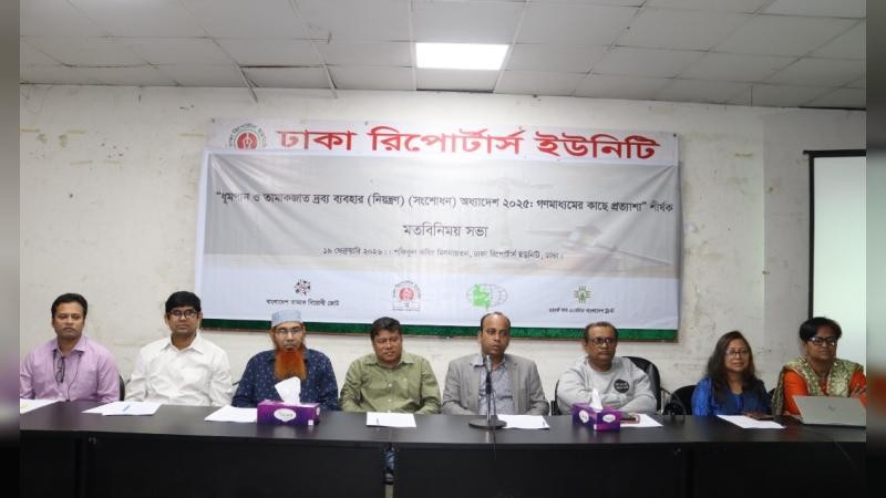 আজ ১৯ ফেব্রুয়ারি ২০২৬, সকাল ১১.০০ টায় ঢাকা রিপোর্টার্স ইউনিটি (ডিআরইউ) এর “শফিকুল কবির” মিলনায়তনে “ধূমপান ও তামাকজাত দ্রব্য ব্যবহার (নিয়ন্ত্রণ) (সংশোধন) অধ্যাদেশ ২০২৫: গণমাধ্যমের কাছে প্রত্যাশা” শীর্ষক মতবিনিময় সভায় বক্তারা এই অভিমত ব্যক্ত করেন।