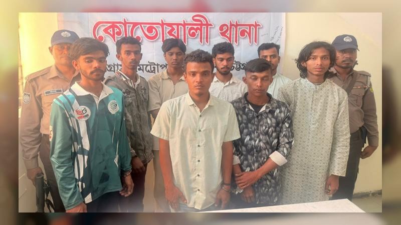 গ্রেপ্তারকৃতরা হলেন- বাঁশখালীর চাঁপাছড়ি আশ্রাফ আলী চৌধুরী বাড়ির দিদারুল আলমের ছেলে মো.তুষার (২০), রত্নপুর এলাকার ২ নম্বর ওয়ার্ড আলম মিয়ার বাড়ির মিজবাহ রহমান চৌধুরীর ছেলে মো.মাসুদুর রহমান (২৪), হাটহাজারীর ফতেয়াবাদ সন্ধীপ কলোনির আবুল কালাম আজাদের ছেলে আব্দুল্লাহ আল নোমান (২০), মো.স্বপনের ছেলে মো.রাকিব (১৯), মৃত জাহাঙ্গীর আলমের ছেলে ইব্রাহীম হোসেন বাবু (২২), মৃত নুরুল হকের ছেলে মো.শরীফ হোসেন মুন্না (২০), মো.বাহারের ছেলে মো.রিয়াজ হোসেন (২০) ও সাতকানিয়ার সৈয়দপাড়া এলাকার ওসমান গনির ছেলে সৈয়দ হামিদ মিয়াজী (২২)।