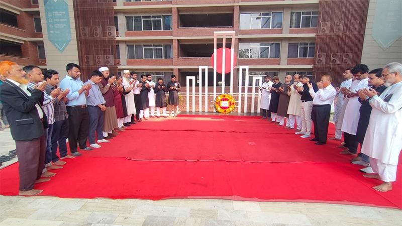 এরপর ভাষা শহীদদের বিদেহী আত্মার মাগফিরাত কামনায় দোয়া ও মোনাজাত অনুষ্ঠিত হয়। দোয়া পরিচালনা করেন ফার্মেসি বিভাগের প্রভাষক মো. মোফাক্কারুল ইসলাম।